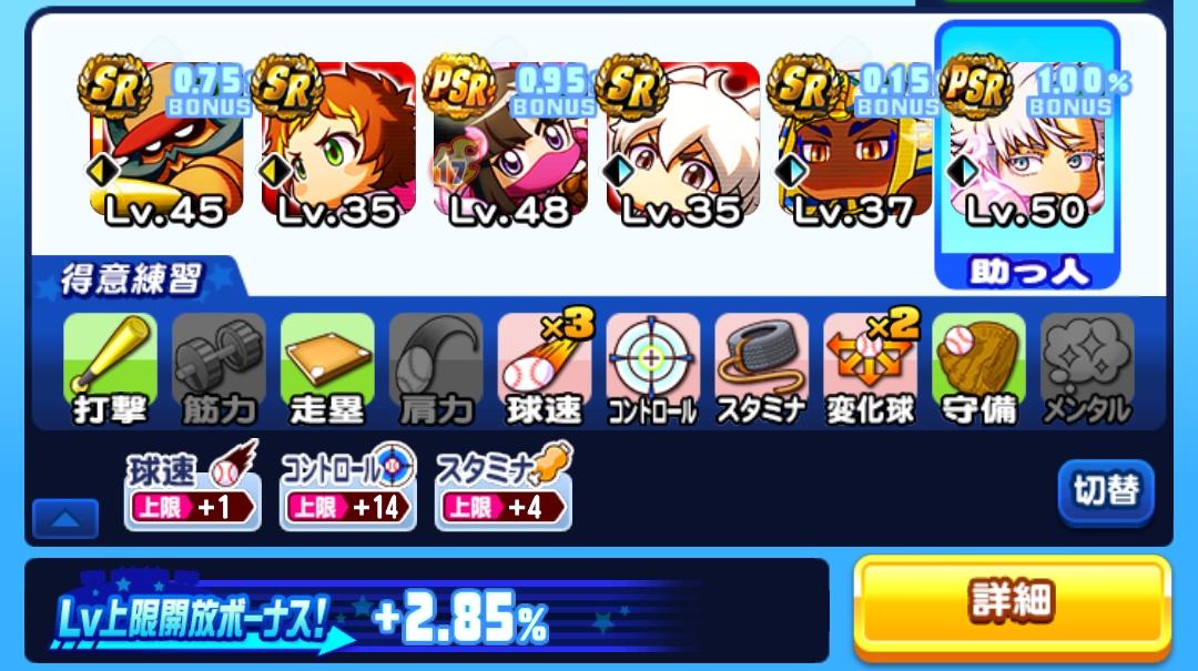 しかし、私の場合は全体的にイベキャラレベルが低いのが気になるところです。