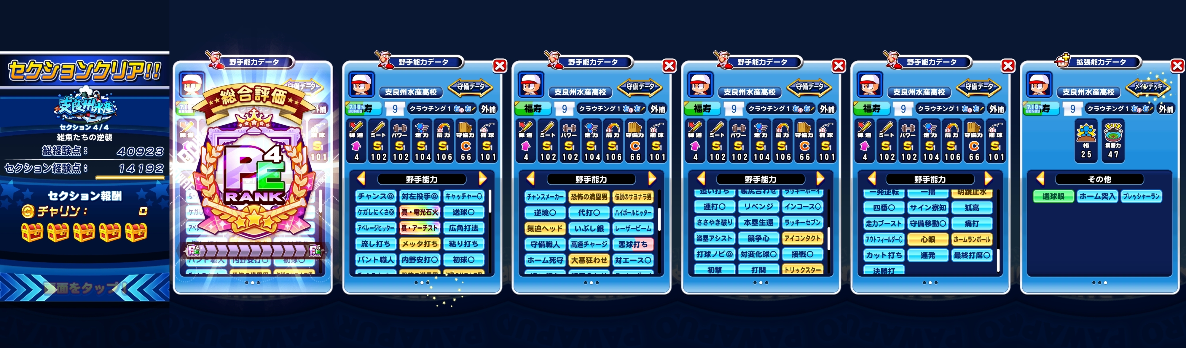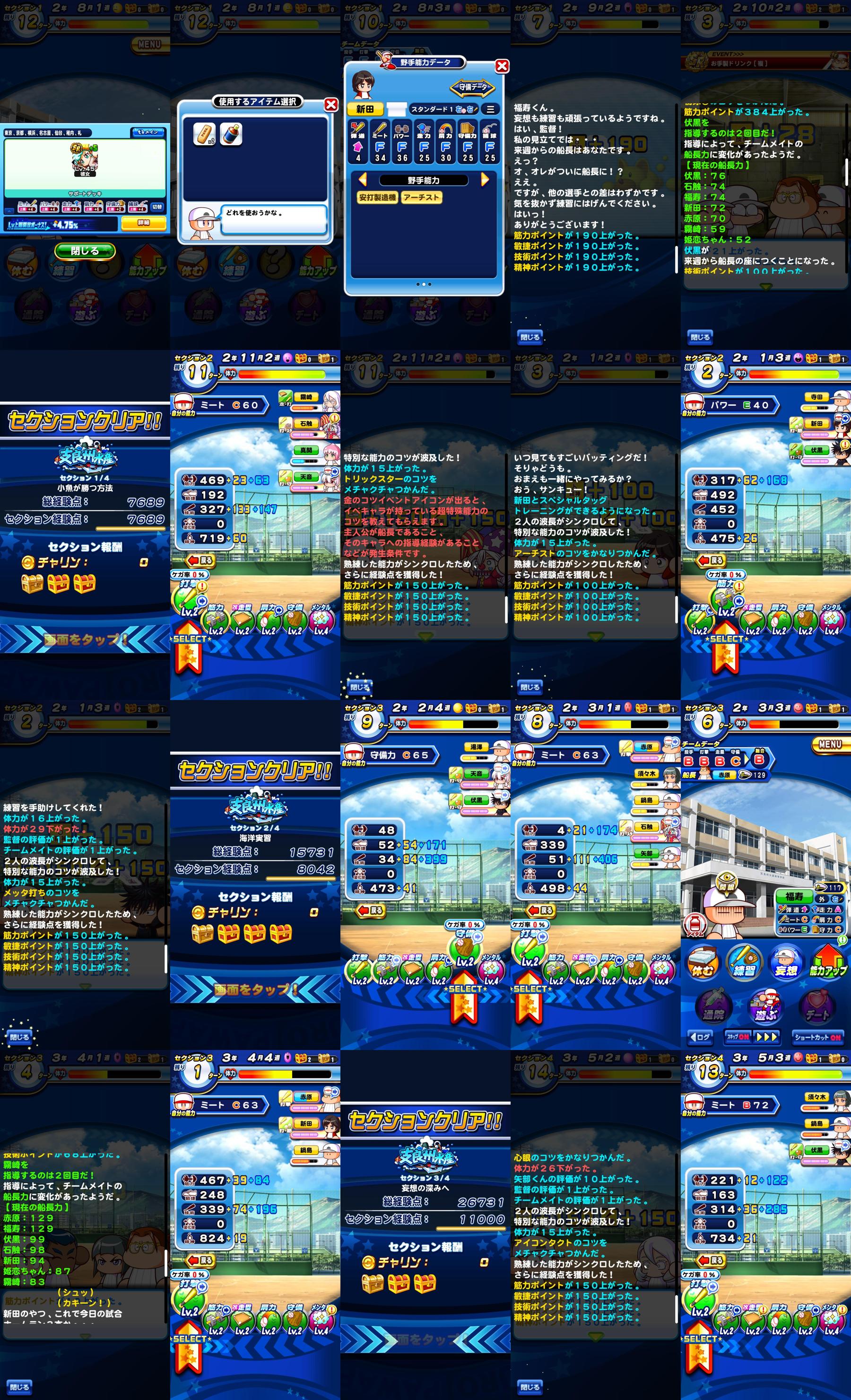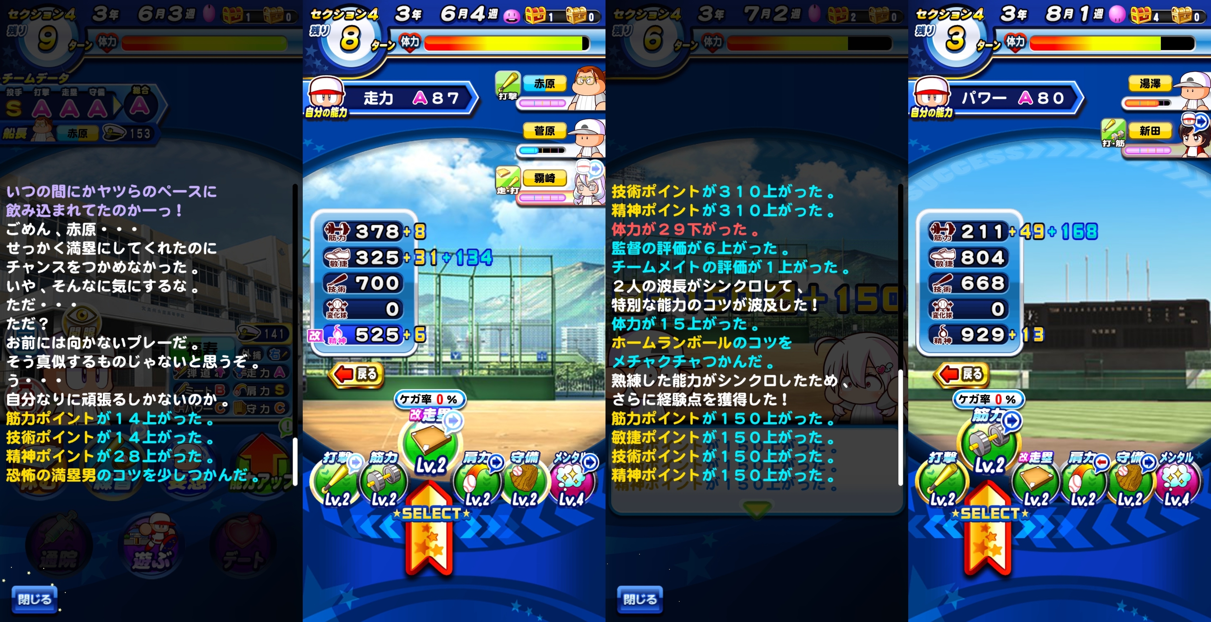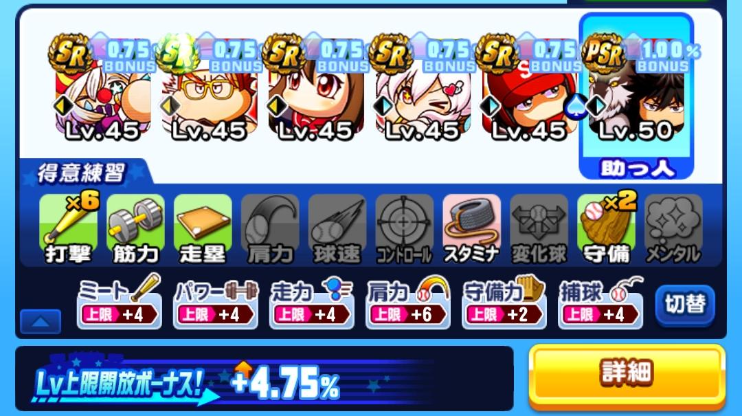 今回打撃6人編成なので技術ポイントが少し過剰気味なのですが、筋力タッグ指導タッグで筋力ポイントを稼いでくれるのでありだと感じました。
