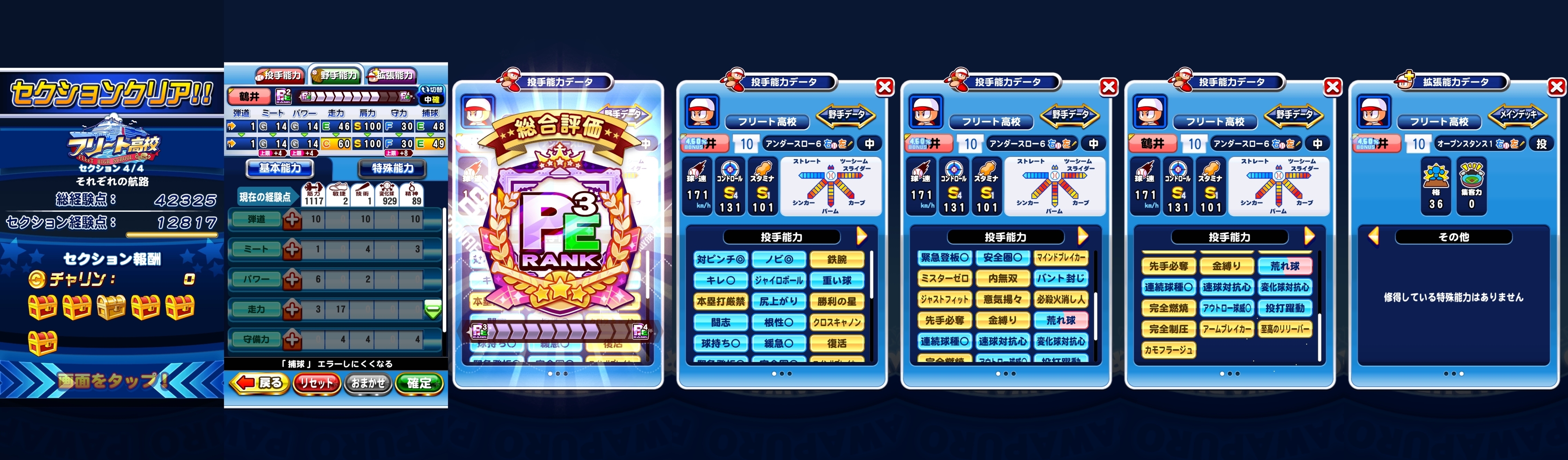 筋力ポイントと変化球ポイントを2000点以上余らせてしまったのでまだまだ伸びしろはあると思います。