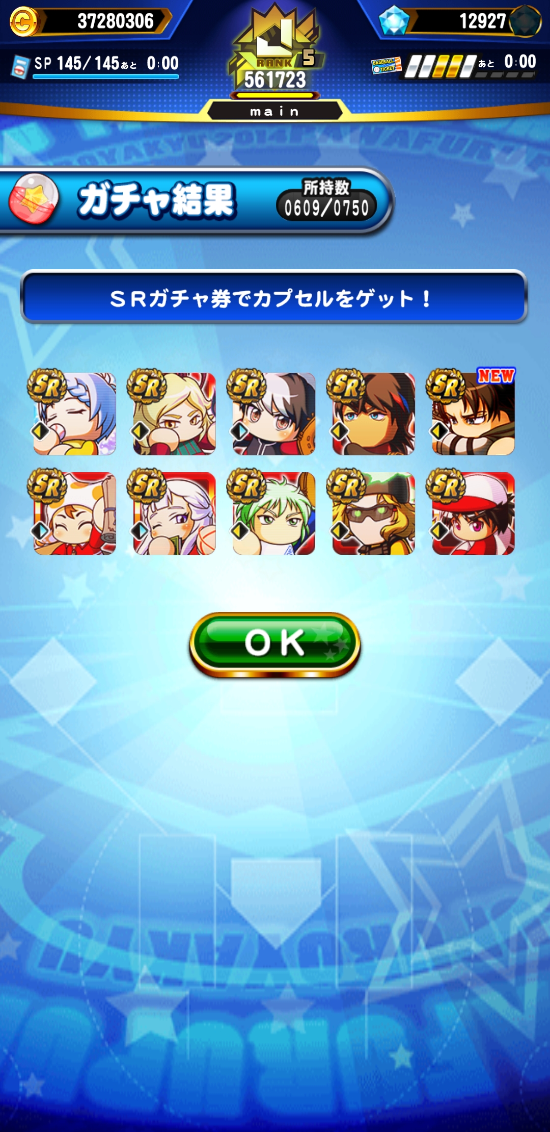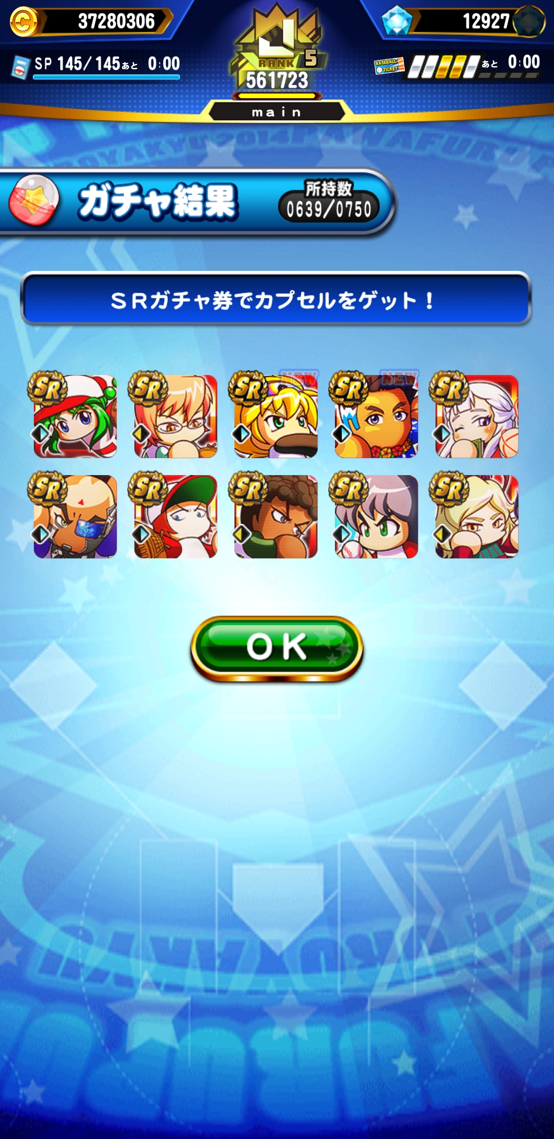 SRガチャ券10枚でこの結果は大勝利ですね。