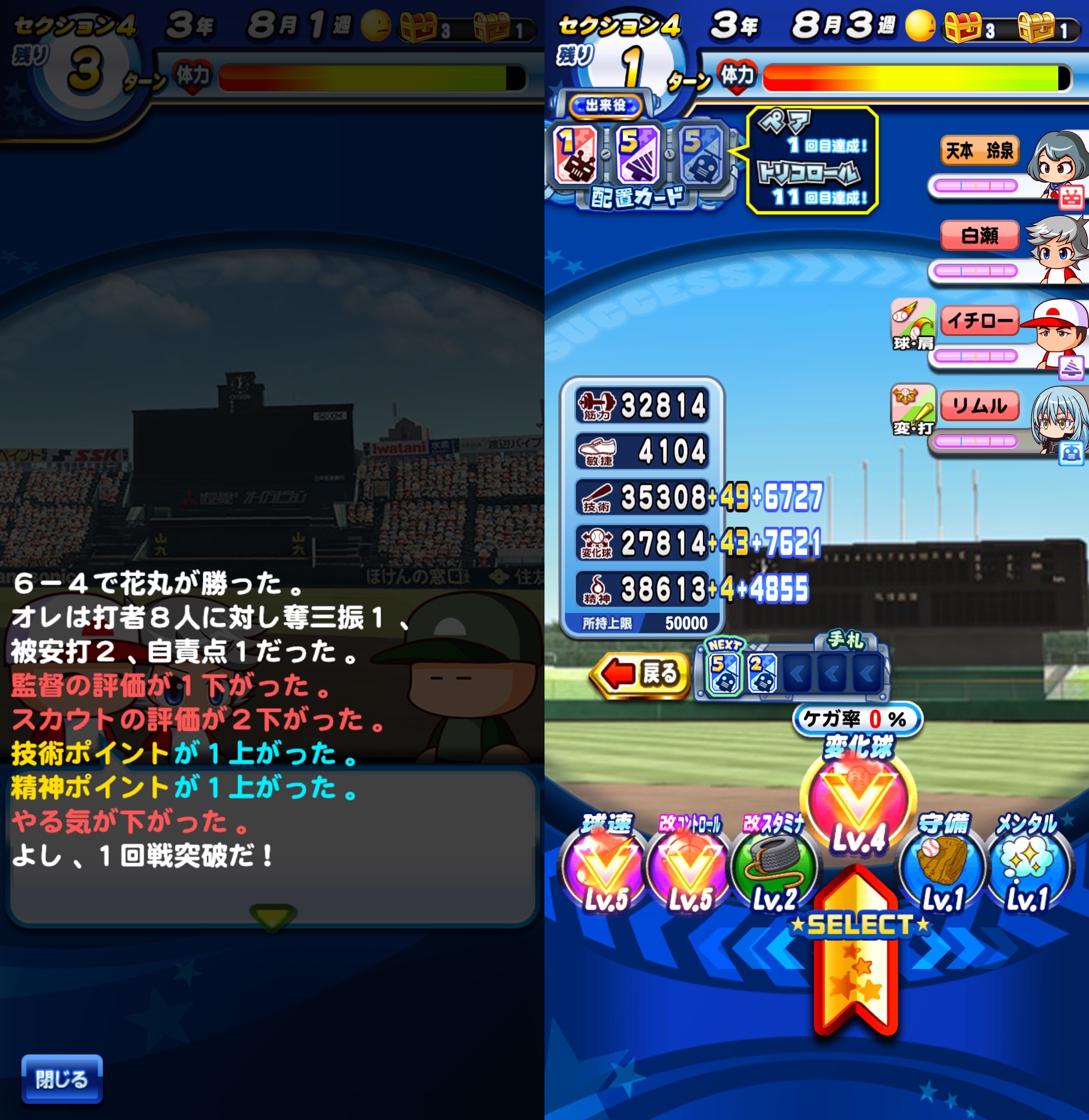今回のサクセスでは球速練習でのスリーセブンを多く踏めました。