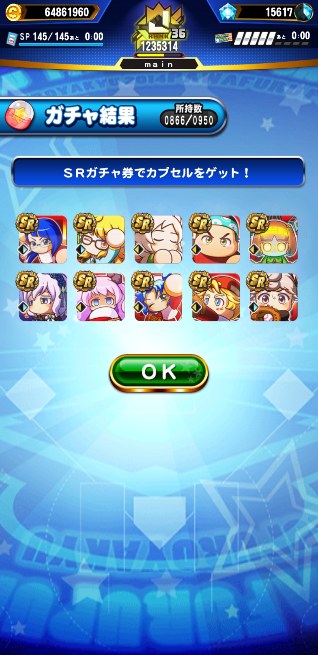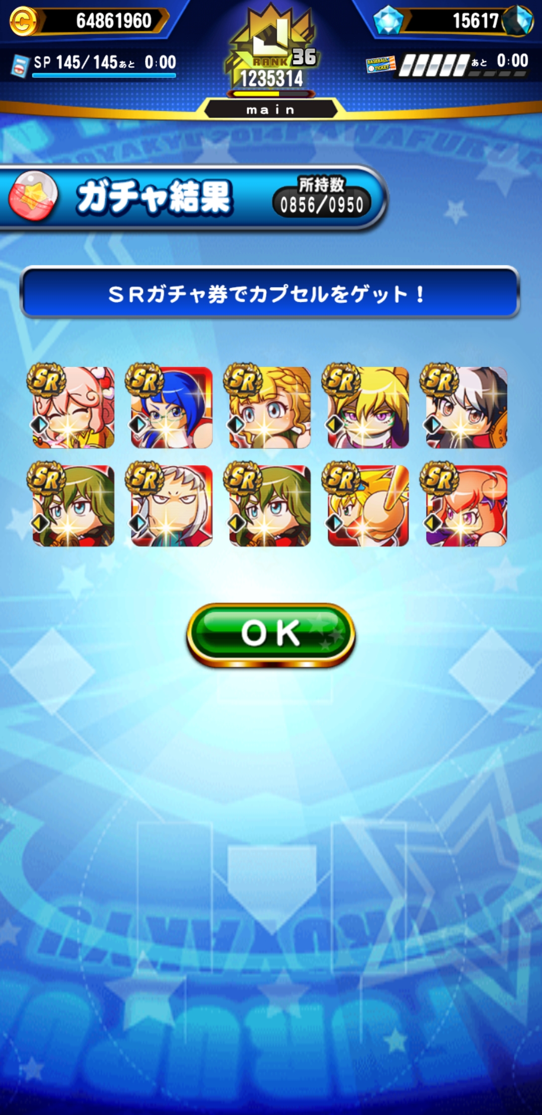 SRガチャ券はいつの間にかカンストしているので50枚くらい使っていこうと思います。